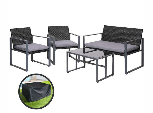 Gardeon 4PCS OutdoorSofa Set with Storage Cover Wicker Harp Chair Table BlackRegular price $447.99