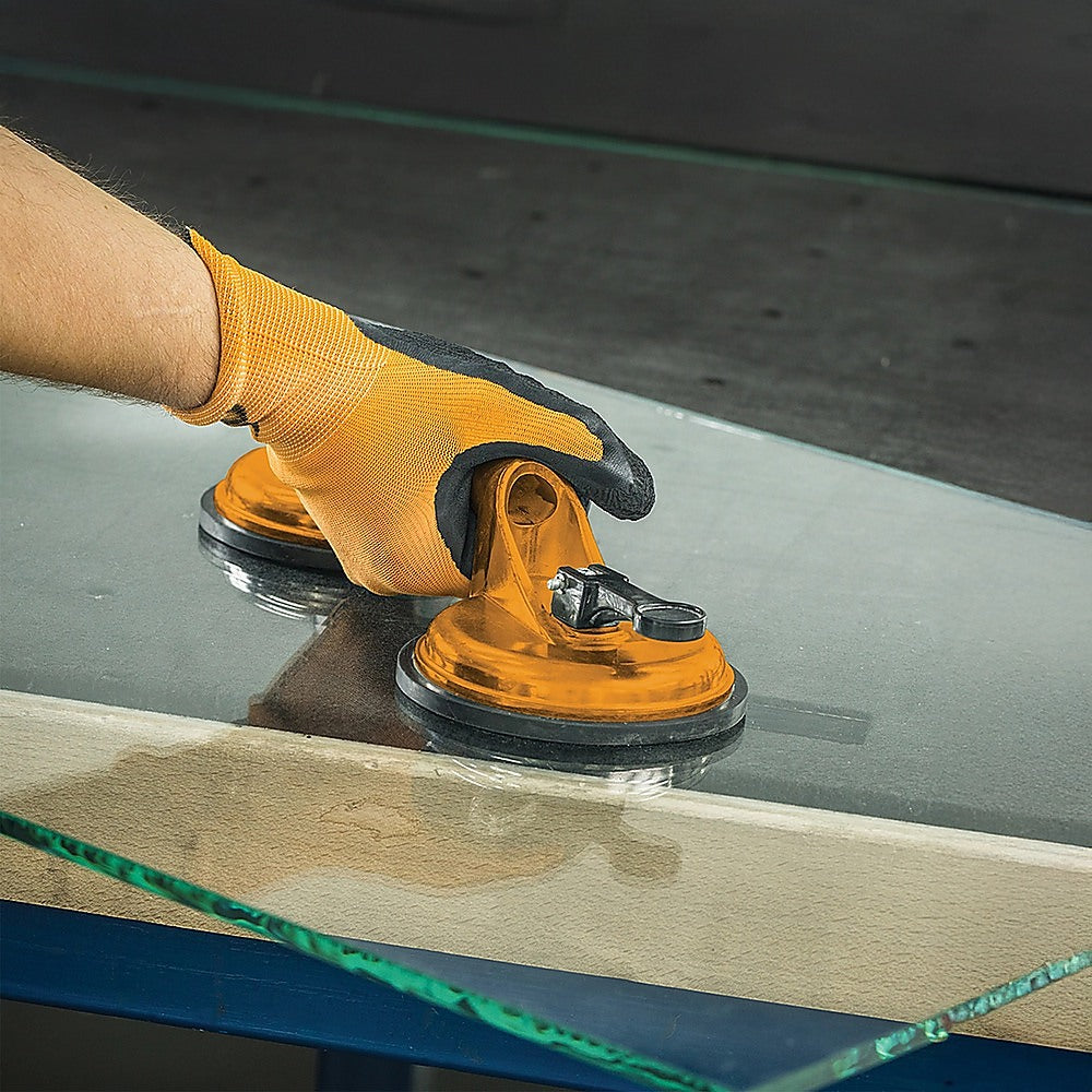 Flat items, particularly those made of glass, are difficultoften dangerousto carry. With these double locking suction cup lifters from Randy Travis Machinery, though, moving even heavy items will be a breeze. With a load-bearing capacity of 100kg per lifter, you can handle almost any load.