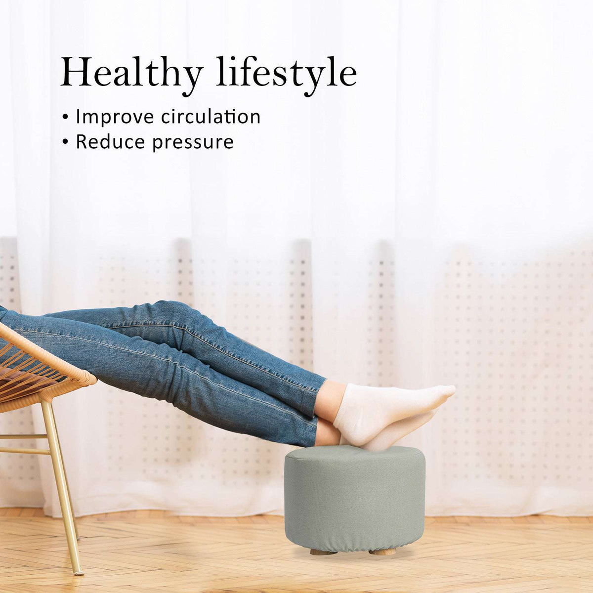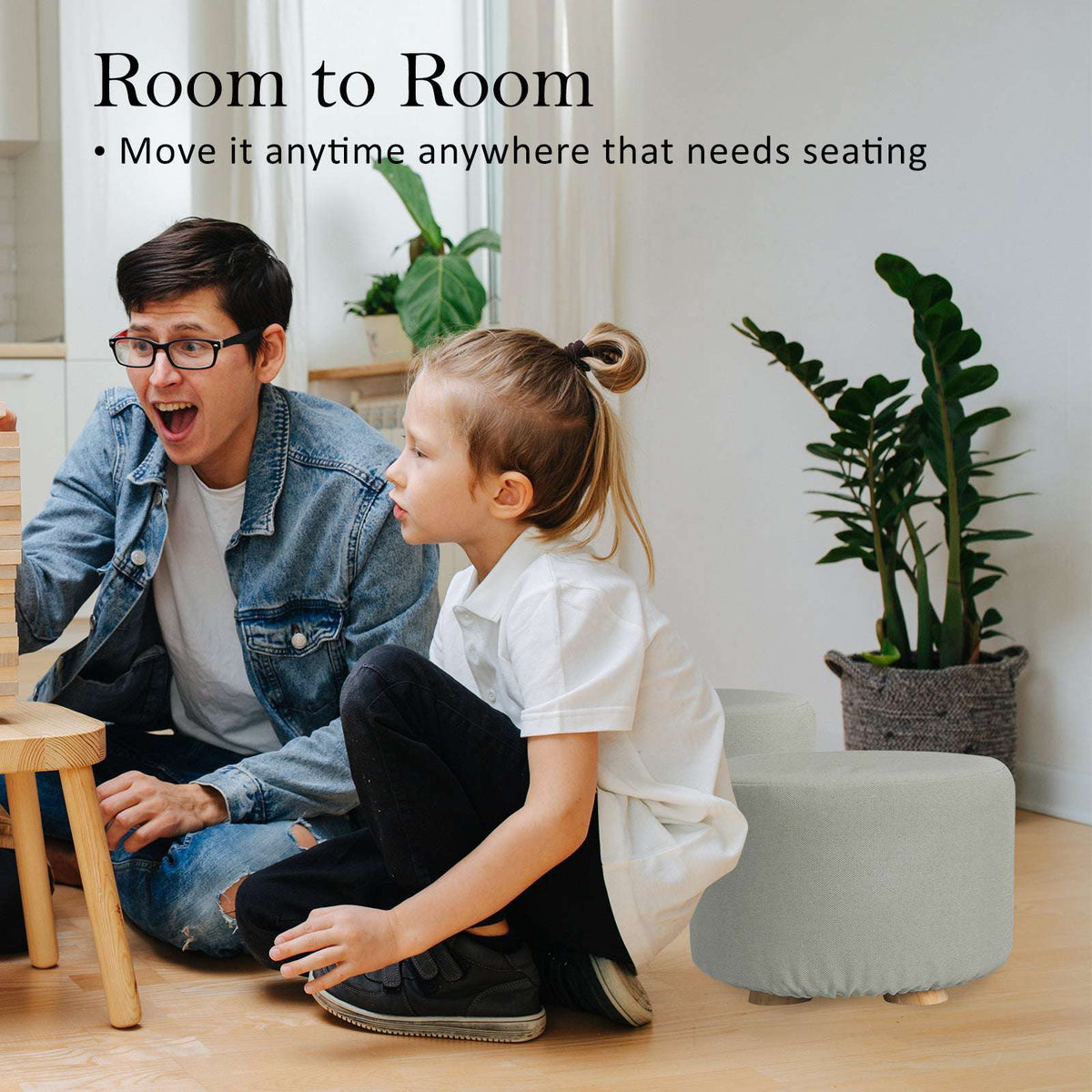La Bella 2 Set Ottoman Round Stool Fabric Wooden Leg Foot - Grey
