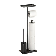 3-in-1 Freestanding Toilet Paper Holder - Thick Carbon Steel with Matte Black Finish, Storage Top, Paper Roll Holder, and Integrated Brush Holder