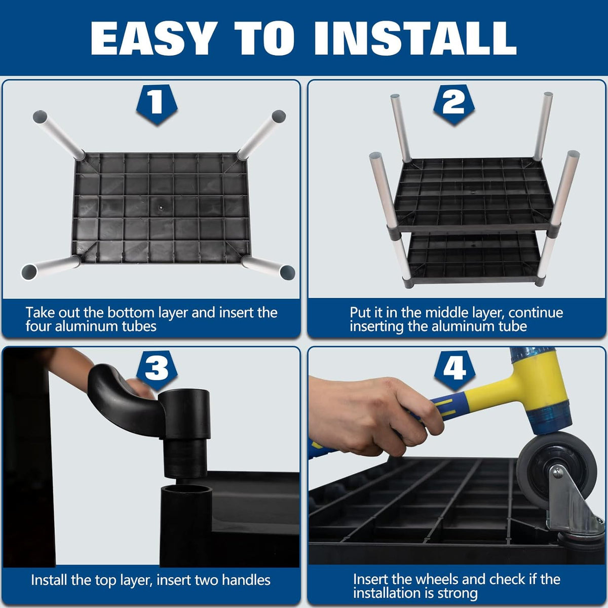 3 Tier Large Service Food Cart Restaurant Trolley Utility Cart Kitchen Catering Shelf Storage