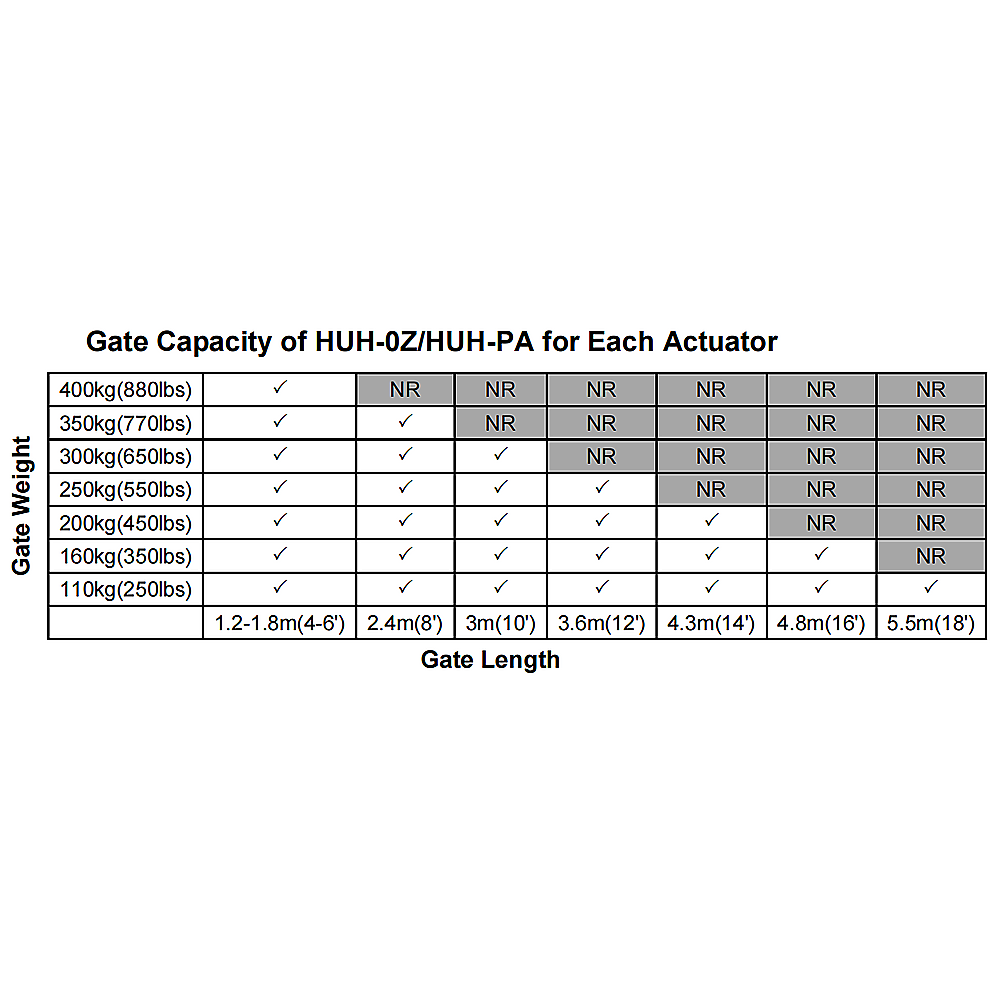 - Maximum width of gate: 5.5m(supporting a 100kg gate)