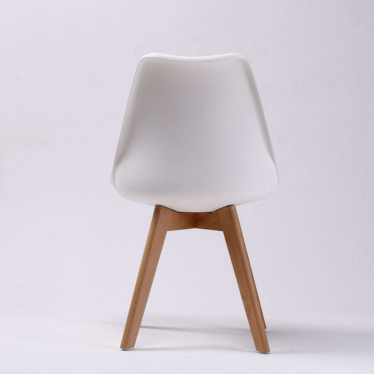 The chair seat is made of high-quality polypropylene plastic with an extra PU leather padded cushion, providing maximum durability and comfort without sacrificing its original aesthetic design. Besides, the beech wooden legs will add extra strength to the chair, giving it an extra stability.