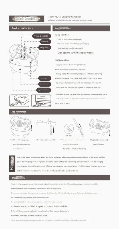 Adorable Bathtub Humidifier with Colorful Night Light - USB-C, 340ml, index