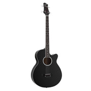 Unleash deep, rich tones with the Alpha 43-inch acoustic bass guitar. This full-size dreadnought type bass guitar features a powerful 4-band equalizer, allowing you to fine-tune your sound. With durable steel strings and a sleek black glossy finish, this Alpha guitar is built for impressive performance. It boasts a basswood body and catalpa wood neck, offering both quality craftsmanship and comfortable playability.