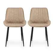 The chairs feature a classic channel-tufted design on the seat, made from premium PU leather that's both stylish and easy to maintain. The ergonomic, curved back provides excellent support, ensuring a comfortable seating experience for hours.