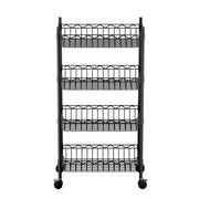 The Artiss 4-Tier Shelving Unit offers a durable and versatile storage solution for any space. Constructed with a reinforced steel frame and finished with rust-resistant powder coating, it supports up to 20kg per shelf, making it ideal for kitchens, garages, or home organisation. The adjustable shelves with V-shaped mesh surfaces allow you to customise storage heights while keeping items secure. Equipped with smooth-rolling, lockable wheels, this shelving unit is easy to move and position as needed. Quick to assemble and low maintenance, it's the perfect compact storage cart to keep your space tidy and organised.