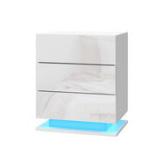 Tired of fumbling in the dark for a light switch in the middle of the night? With our Artiss LED Bedside Table, your problems are solved. The bedside table comes with built-in LED lighting that can be customised into 16 different colours and 4 different effects to suit your preference. Not only will it create a beautiful ambience, it will also save you from buying extra bedside lamps or nightlights. Three deep drawers sliding on smooth coated runners provide ample storage space. Better still, the handle-free design gives it a modern vibe that stands out from the mundane. Constructed from quality particle board and MDF with melamine finish and high-gloss UV front, the bedside table is durable and easy to maintain. And it will be the perfect addition to your modern bedroom with its contemporary and linear design. Or you can even keep one in the living room to wow all your houseguests.