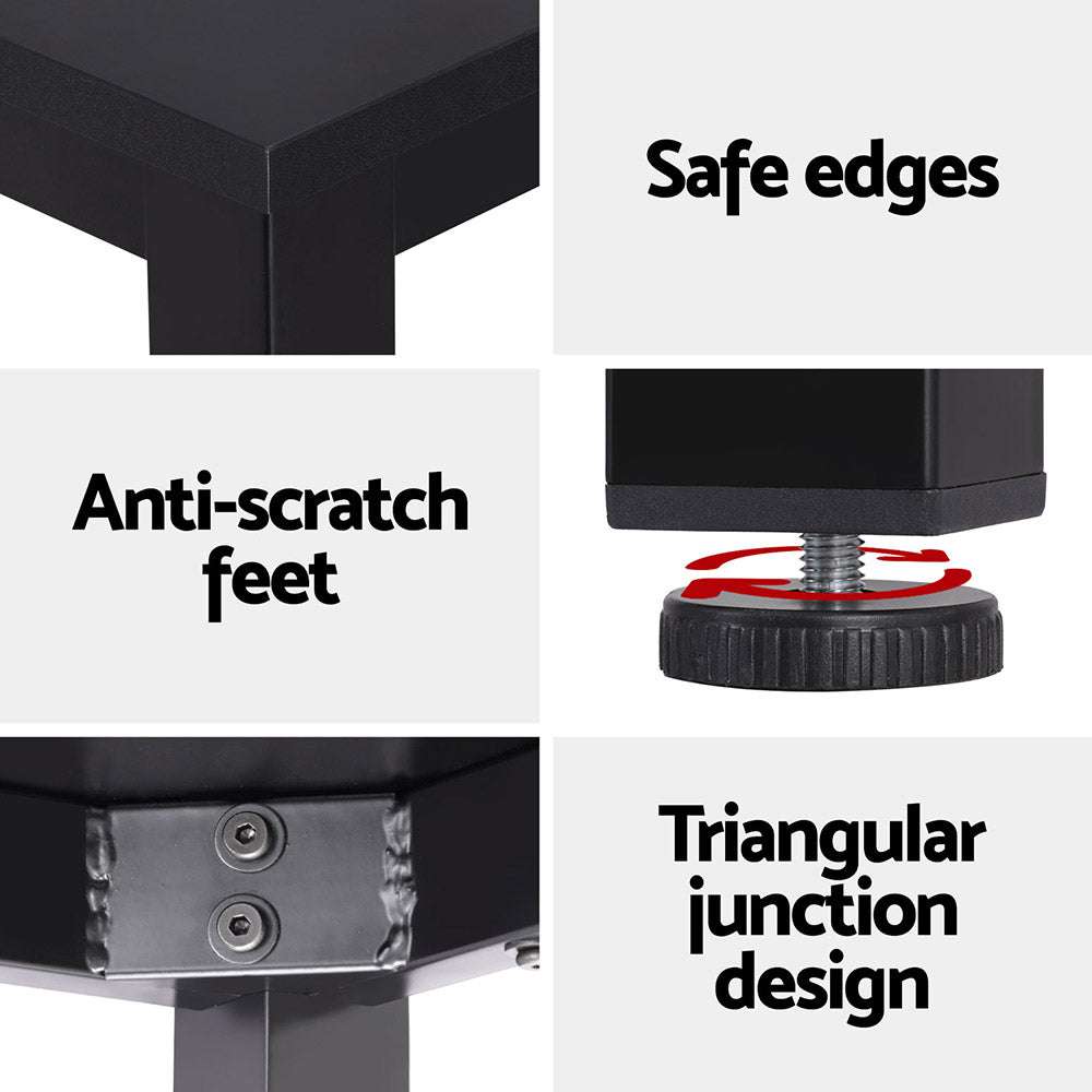 Conquer your workload in style and comfort with this versatile computer desk! The wide desktop provides ample space for your monitors, keyboards, and all your office essentials. While offering generous surface area, the 15mm thick particle board desktop maintains a sleek profile. The sturdy metal frame ensures stability, while anti-scratch feet protect your floor from damage. This modern and stylish desk has an easy assembly process and also prioritises your safety and comfort with smooth, rounded edges.