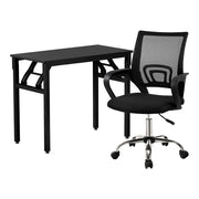 Paired with the desk is a mesh office chair with highly breathable mesh means that you are never hot and bothered during long seating sessions as the chair is always well ventilated. Not only that, but its built-in lumbar support conforms to your back to help fix your posture and ease back pain. The thick padded seat ensures that you are always seated comfortably. You can easily set the chair height with the gas lift to suit your favorite position – no more slouching over the desktop. The chair can also be rotated 360° to face any direction, while the sturdy chrome base features omni-directional wheels for smooth movement.