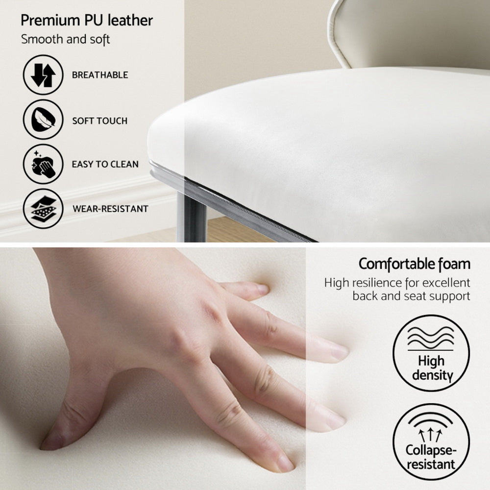 Wine, dine, and entertain guests with our meticulously designed Artiss Dining Chair. They make a gorgeous addition to any dining space and will make your guests envious of your gorgeous dining ambience. Not just for your dining room, these dining chairs are sure to make a statement in your study room, living room, and dressing room. Their versatility and ultra-modern design make them stand out. Incredibly stylish and sophisticated, our Artiss Dining Chair features a durable inner solid wood frame that ensures lasting quality and ultimate durability. It comes with solid steel legs with anti-slip foot pads for ultimate stability and to keep your floors scratch-free. The dining chairs flaunt plush PU leather seats with a contoured backrest that offers incredible comfort and support and allows you to dine comfortably. Our dining chairs can hold up to 150kg weight, and their reinforced steel fixings make them super stable and reliable. Our Artiss dining chairs are certainly a big bang for your buck. Bring home this gorgeous set of dining chairs without any hesitation.