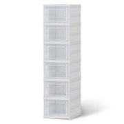 Maximise your space with this versatile Artiss shoe rack! Crafted from durable PP plastic, this 6-tier organiser offers clever shoe storage for entryways, cloakrooms, or garages. The innovative foldable design features a one-piece frame for quick setup, breathable back flaps, and see-through doors with raised handles for easy access. Each compartment holds up to 2.5KG, providing practical shoe box storage without sacrificing style. Perfect for small homes! Dimensions: 25.5x34.5x105cm. White. Assembly required (1 package).