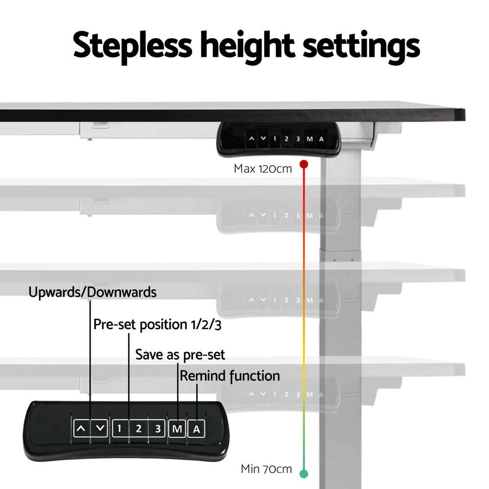 Poor posture and sedentary lifestyles contribute to several health issues. Now keep your health in good shape with Artiss motorised sit and stand desk frame! It’s designed to go with our Artiss desktop and won’t disappoint you either with its quality or aesthetics. With our innovative height-adjustable desk frame, you can stand while working and stretch and engage your muscles to prevent them from weakening. Our desk frame features an easy-to-use digital control panel. It enables you to save up to three preset heights and set a sit/stand reminder system. And the smooth-functioning dual motors allow ultra-quiet operation with low energy consumption. Furthermore, our high-quality powder-coated desk frame makes cleaning and maintenance easy and ensures ultimate sturdiness. It also comes with adjustable rubber foot pads that offer extra stability and keep your floors safe. Get yourself Artiss sit/stand desk frame to prevent fatigue and improve productivity.