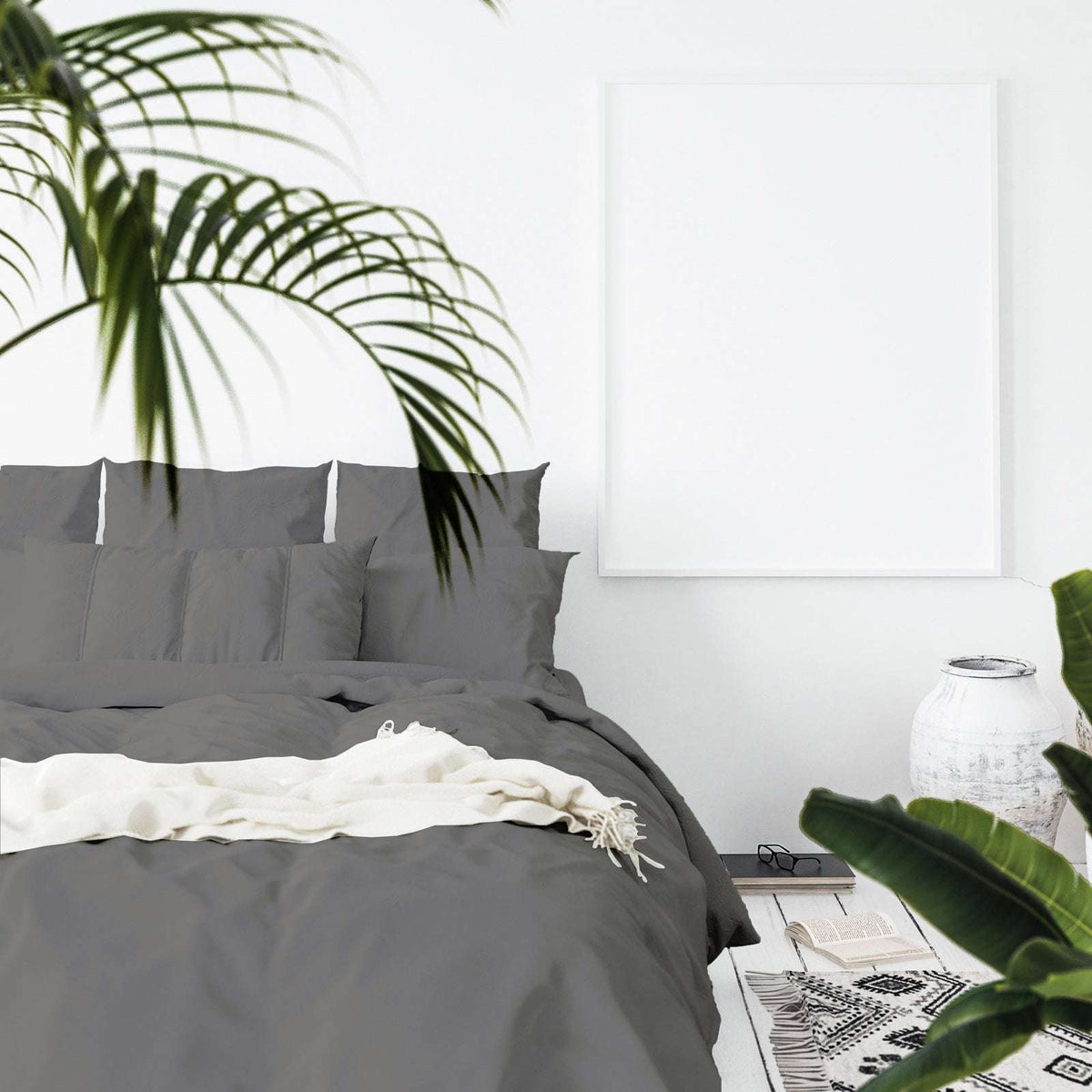 Balmain 1000 Thread Count Hotel Grade Bamboo Cotton Quilt Cover Pillowcases Set - Queen - Pewter