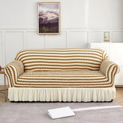 Beige-coffee Three-person Sofa Bubble Gauze Sofa Cover with Skirt - Full Elastic Dustproof Three-person Seater 190-230cm