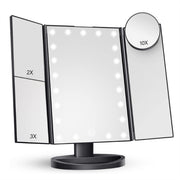 Black LED Lighted Tri-Fold Vanity Mirror with 2X/3X/10X Magnification