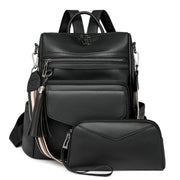 Black Women's Retro PU Leather Backpack - Dual-Color Tassel Design, Winter High-End Style