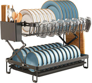 - 2-TIER LARGE CAPACITY DESIGN: Maximize your countertop space with a double-layer structure that holds up to 13 plates on the top rack and 22 bowls on the lower tier. Additional zones accommodate cups, utensils, and cutting boards — perfect for compact kitchens.