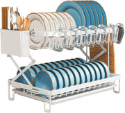 CARLA HOME 2-Tier Dish Drying Rack with Drainage Tray, Utensil Holder, Cup Hooks & Cutting Board Rack for Kitchen (White)