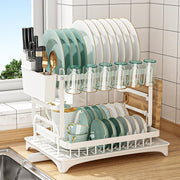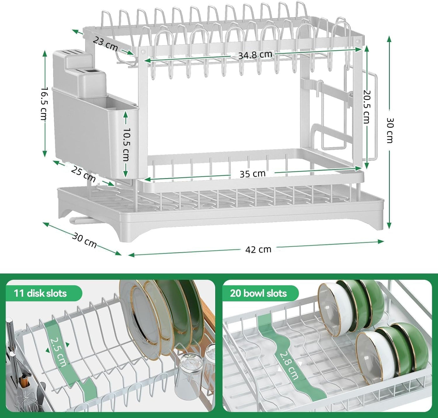 - MAXIMIZED 2-TIER STORAGE: This double-layer design provides dedicated slots for plates, bowls, mugs, utensils, and even cutting boards—freeing up valuable counter space while keeping your kitchen organized and tidy.