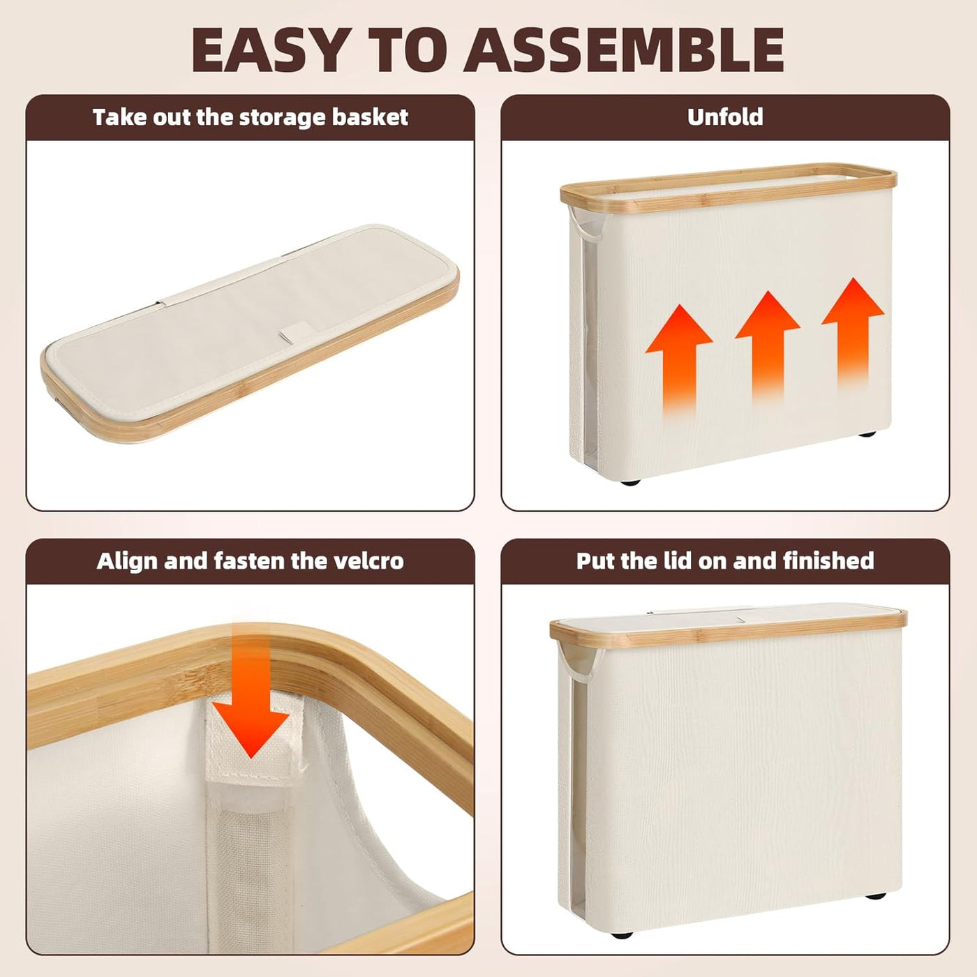 CARLA HOME Toilet Paper Storage Basket Holds Up to 12 Rolls with Bamboo Lid and Handle for RV Closet (White)