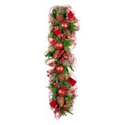 Christabelle 100cm Christmas Garland Lush Green Holiday Garland w/ Red Berries, Baubles & Pine Cones Pre-Decorated Festive Shelf or Banister Decoration