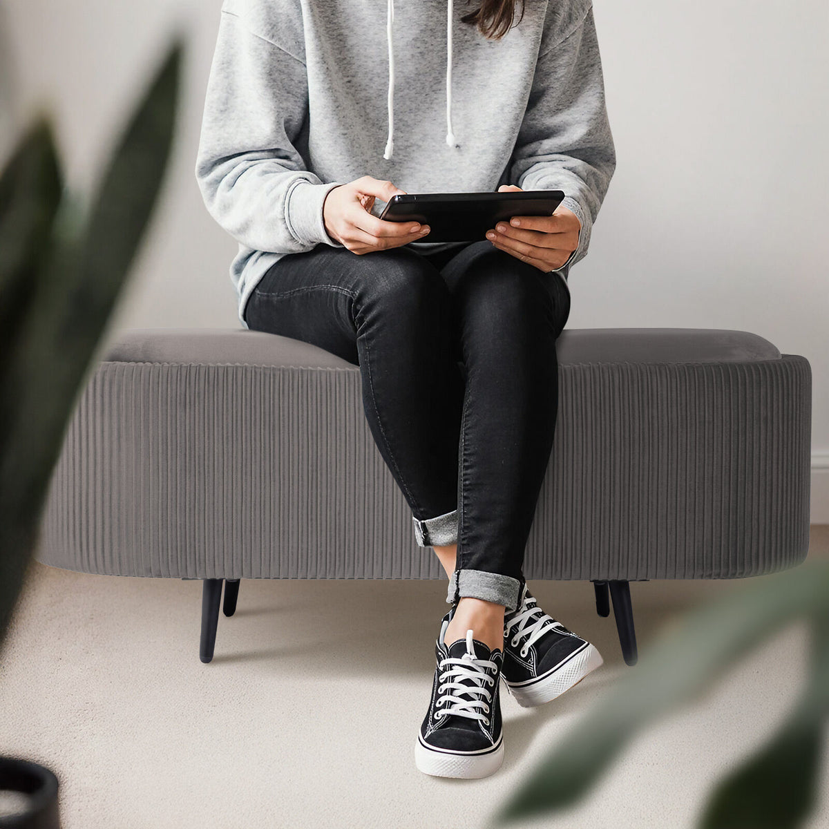 Its smooth black metal legs bring a sleek, modern edge, making it a standout in any living room, bedroom, or hallway. Floor-friendly pads protect your surfaces, and it?s quick to set up right out of the box. Practical, pretty, and perfectly versatile.