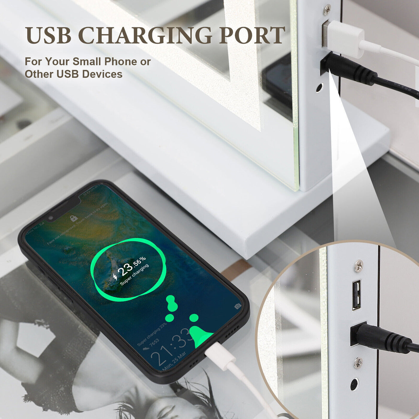 Crystal Vanity Mirror 80CM LED Bluetooth Magnifying index