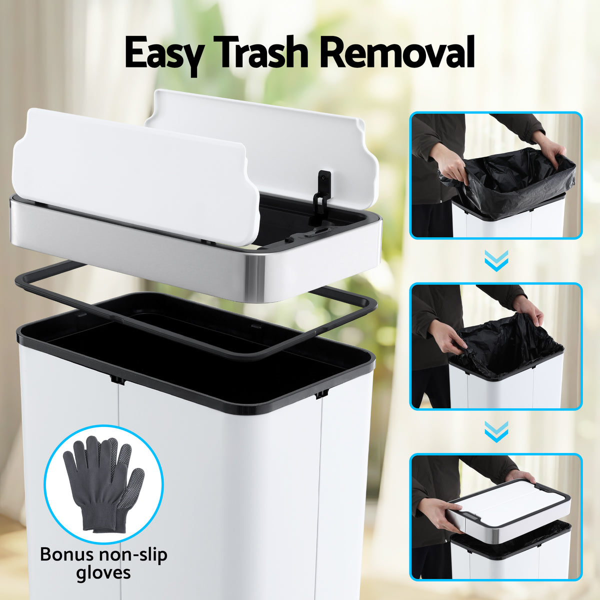 Devanti Rubbish Bin 70L Automatic Sensor Kitchen Bin, Slim Smart Garbage Can Touchless Rectangular with Liner Holder, Fully Closed Lid for Bedroom, Bathroom, Living Room, White (Online Order Only)