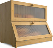 Double Layer Bamboo Bread Box for Kitchen Counter with Large Capacity and Clear Window (Online Order Only)
