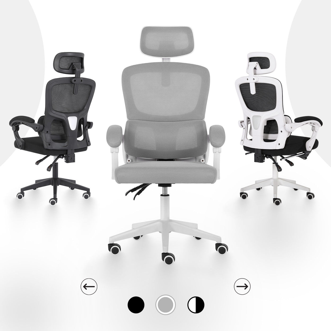 La Bella Ergonomic Office Chair - Lumbar Support, Adjustable Headrest VELTRA - Grey