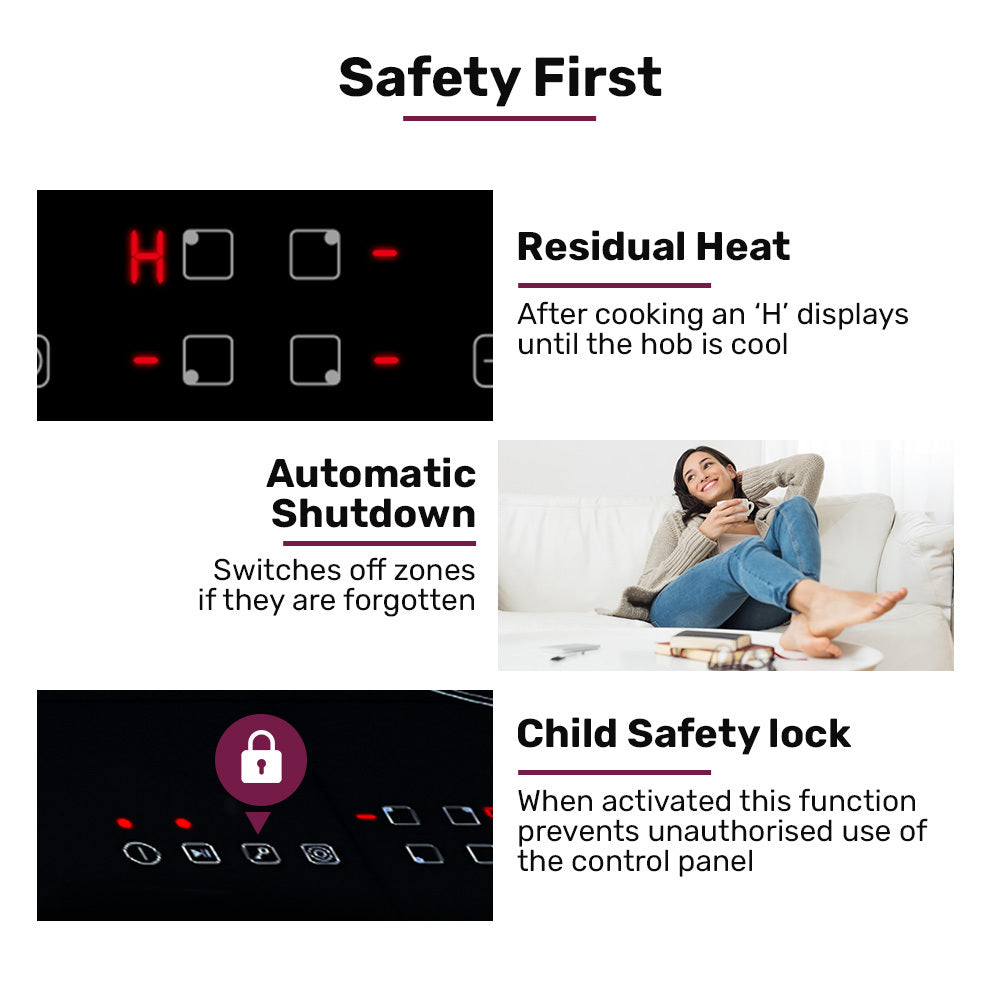 For ease of mind, the EuroChef cooktop has a timer, built-in Child-Lock function, Residual Heat Indicators and an Automatic power off function that switches off the zones if forgotten. And, the Pause function is handy in the event of any unexpected interruptions.