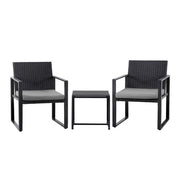 Elevate small spaces with this elegant bistro set, featuring handwoven PE rattan on a sturdy steel frame for lasting durability. The tempered glass tabletop resists scratches and wipes clean easily, while powder-coated finishes prevent rust. Weather-resistant materials and non-slip feet ensure stability in any season. Includes removable cushions for comfort and requires easy assembly. Perfect for balconies, patios, or indoor use, this low-maintenance set combines style and functionality for effortless outdoor living.