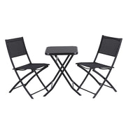 Upgrade your outdoor relaxation with Gardeon foldable 3-piece patio set, designed for portability and style. The lightweight chairs and square side table fold flat for easy storage and transport, perfect for small spaces or on-the-go use. Made with durable, breathable mesh fabric, the chairs keep you cool and dry, while the powder-coated steel frames resist rust and weathering. The modern table offers a handy spot for drinks or snacks. Ideal for decks, patios, or picnics��durable, compact, and effortlessly chic.