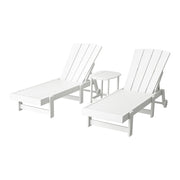 Upgrade your outdoor relaxation with the Gardeon 3-Piece Set! This versatile combo includes two 4-position adjustable chaise lounges and a durable HDPE side table, perfect for poolside, patio, or beach use. The lounges feature reclining backrests for sunbathing, reading, or napping, with 150kg weight capacity, weatherproof HDPE wood-grain construction, and stainless steel frames. Effortlessly move them with rolling wheels and handles. The matching side table is fade-resistant, supports 91kg, and includes water-draining slats and safety-curved edges. Zero maintenance��just wipe clean! Quick assembly lets you enjoy instant comfort. Ideal for stylish, hassle-free outdoor living!