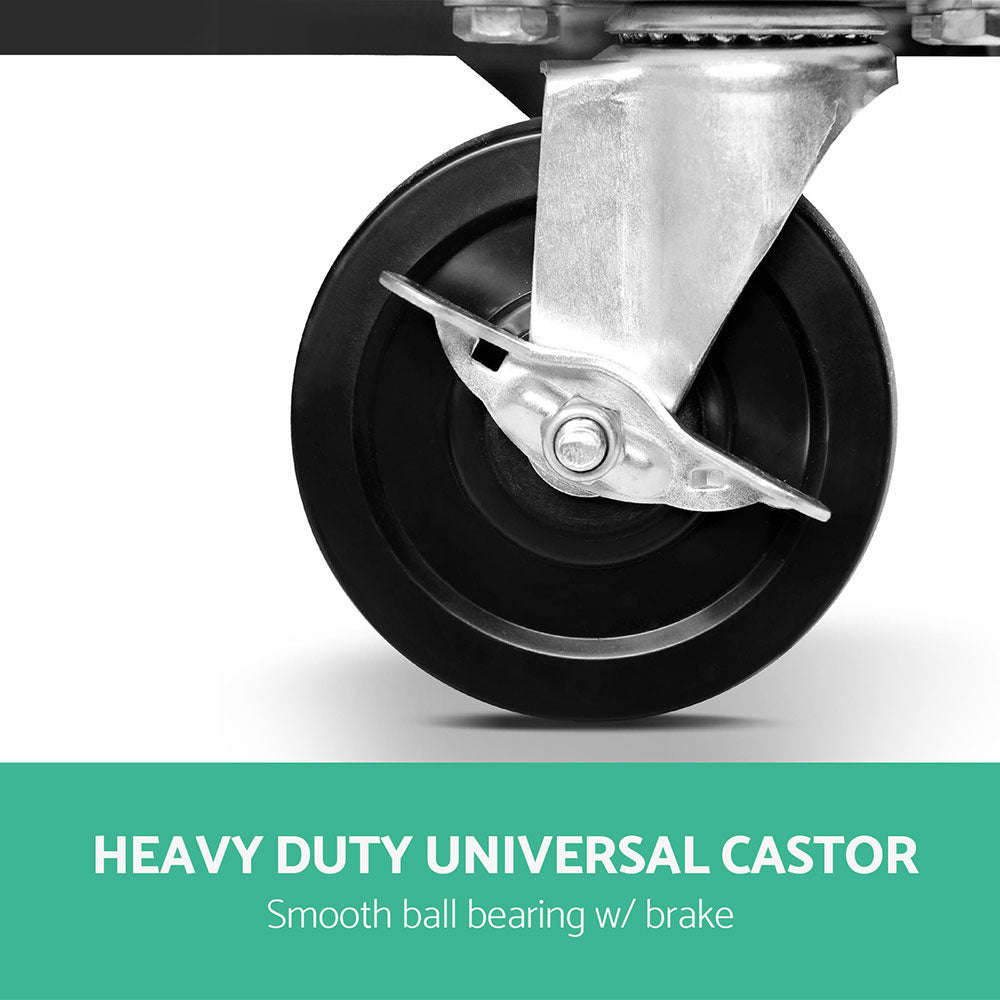 This robust, multi-drawer Giantz Tool Trolley is an essential for any workshop. Crafted from durable steel, it features smooth ball-bearing slides for easy access and a secure lock system for safety. Its spacious design includes varying drawer sizes to accommodate tools of all shapes, complete with non-slip liners. The chest is also mounted on omni-directional castors with locakble front wheels, ensuring a smooth maneuverability and stable positioning. Sleek and functional, it's perfect for organizing and protecting your valuable tools.