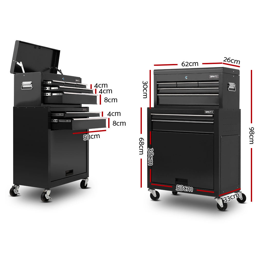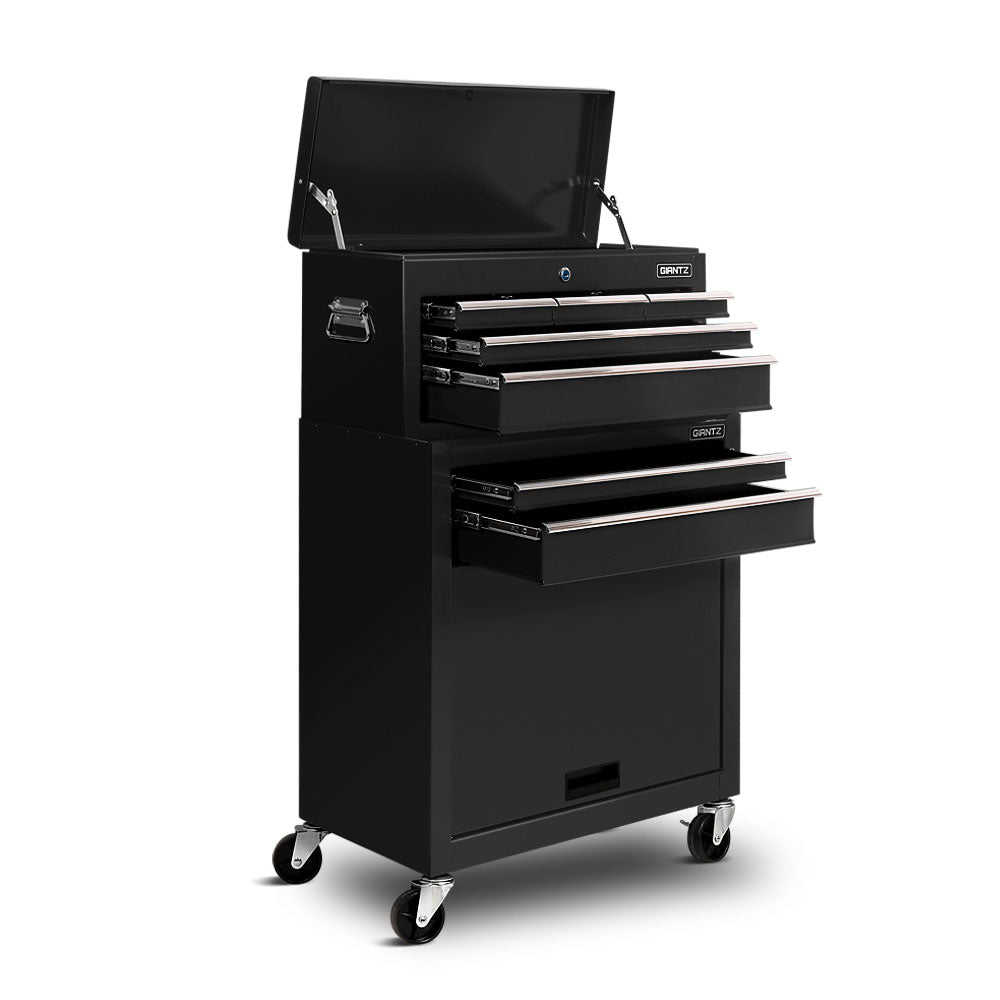 This robust, multi-drawer Giantz Tool Trolley is an essential for any workshop. Crafted from durable steel, it features smooth ball-bearing slides for easy access and a secure lock system for safety. Its spacious design includes varying drawer sizes to accommodate tools of all shapes, complete with non-slip liners. The chest is also mounted on omni-directional castors with locakble front wheels, ensuring a smooth maneuverability and stable positioning. Sleek and functional, it's perfect for organizing and protecting your valuable tools.