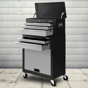 This robust, multi-drawer Giantz Tool Trolley is an essential for any workshop. Crafted from durable steel, it features smooth ball-bearing slides for easy access and a secure lock system for safety. Its spacious design includes varying drawer sizes to accommodate tools of all shapes, complete with non-slip liners. The chest is also mounted on omni-directional castors with locakble front wheels, ensuring a smooth maneuverability and stable positioning. Sleek and functional, it's perfect for organizing and protecting your valuable tools.
