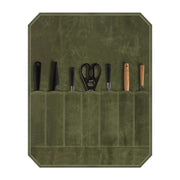 Green Durable Waxed Canvas Knife Roll Bag - Portable Chef Tool Organizer