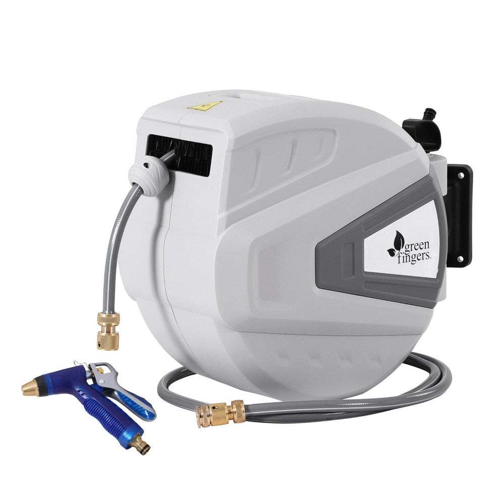 The Green Fingers Water Hose Reel is the ultimate solution for hassle-free gardening and outdoor water management. This integrated storage system keeps your hose neatly organised while offering easy access and operation. Featuring an automatic rewind system and an incremental locking mechanism, it ensures smooth and secure use every time. Built with UV and corrosion-resistant materials, this hose reel is designed to withstand the elements for lasting durability.