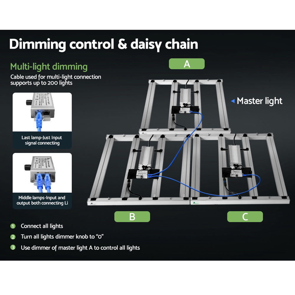 Dimmer knob added, ON/OFF and multi-connection function,more convenient to adjust the brightness. Up to 200 lights can be daisy-chained and control together on just one light