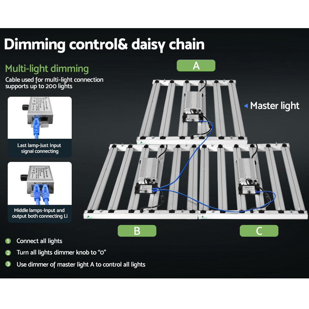 Dimmer knob added, ON/OFF and multi-connection function,more convenient to adjust the brightness. Up to 200 lights can be daisy-chained and control together on just one light