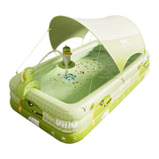 Bring the joy of summer into your backyard with thisfun-filled inflatable swimming pool designed for kids and families. Perfect for gardens, patios, or small outdoor spaces, it turns any sunny day into a splashy adventure. Featuring a built-in sun canopy, this pool offers shade and UV protection so children can enjoy hours of safe play without worrying about harmful sunlight exposure. The playful dinosaur-themed design includes a water-spraying dinosaur head that adds excitementkids love watching water arc across the pool while playing games. A floating basketball hoop encourages active fun, letting little ones practice their shots while staying cool in the water. The spacious rectangular shape provides ample room for multiple children to swim, splash, and interact safely. Made from durable, eco-friendly PVC material, its tough enough for daily use yet gentle on sensitive skin. With an easy-to-use inflation system and quick deflation for storage, setup takes just minutes. After playtime, fold it neatly and store under the sink or in a closetideal for seasonal use or travel. Whether you're hosting a summer party, relaxing at home, or enjoying quality time with kids, this all-in-one water play set creates unforgettable memories. Its more than just a poolit's a full outdoor entertainment center for every family.