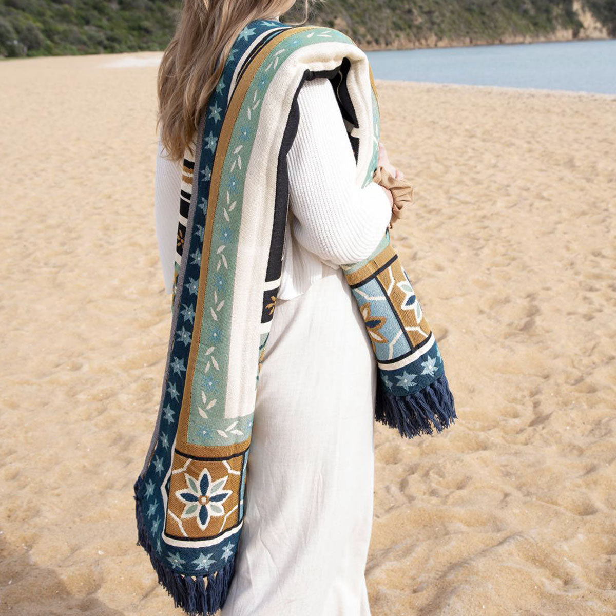 J Elliot Home Kasbah Luxury Fringe Throw 130 x 160cm Blue (Online Order Only)