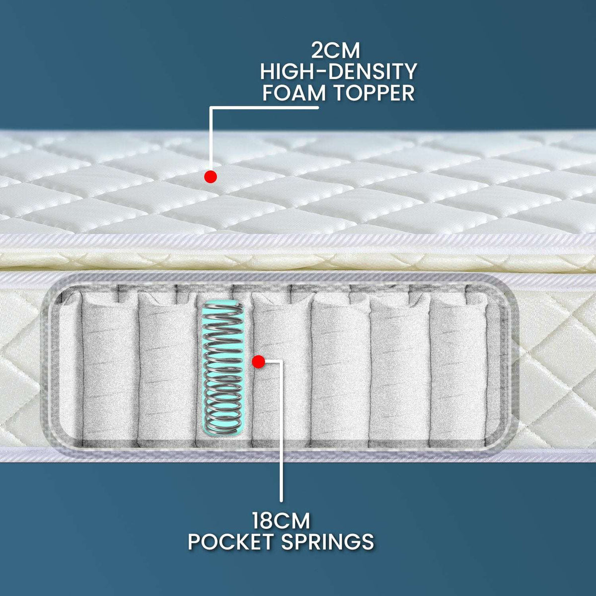 Pocket Springs follow the natural contours of your body for sublime comfort, reduces deformation and responds precisely to your every movement. Specifically zoned in 5 places to provide maximum support. It offers edge to edge support resulting in a larger sleep surface and ensuring this top quality mattress has a long life span.