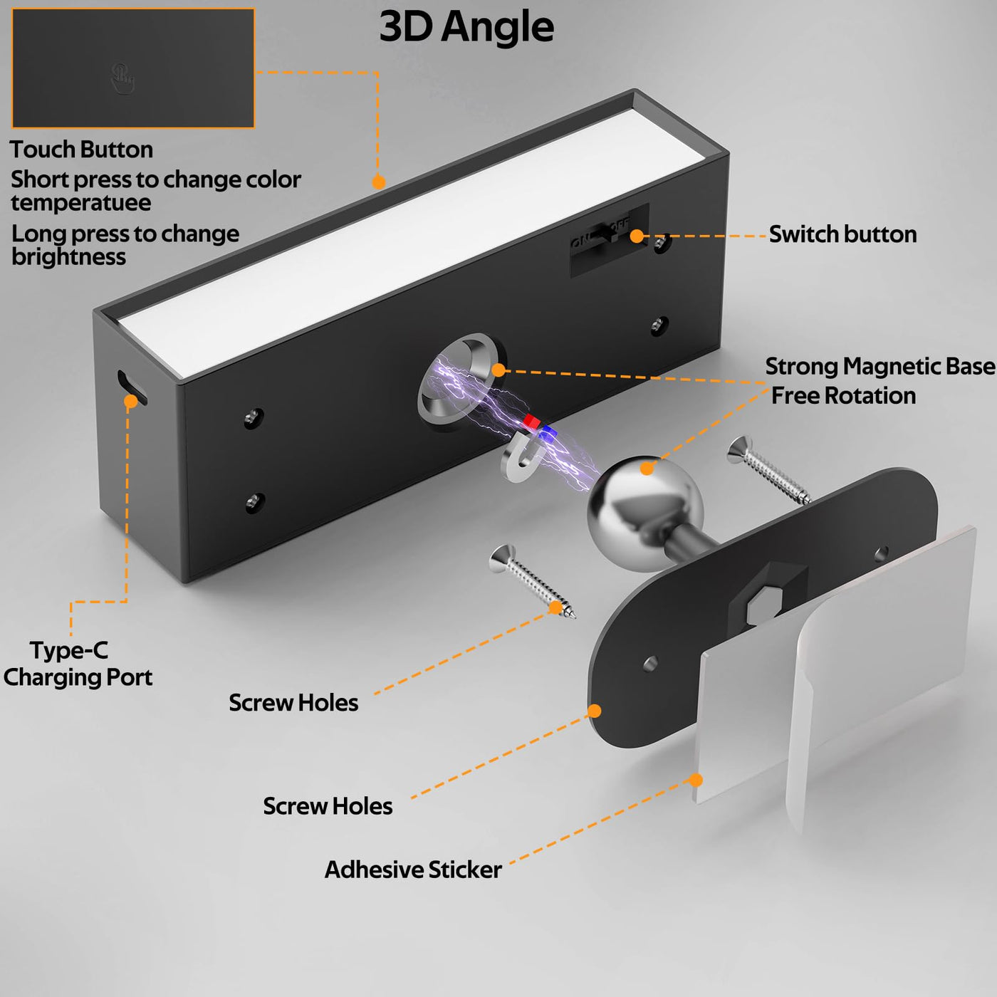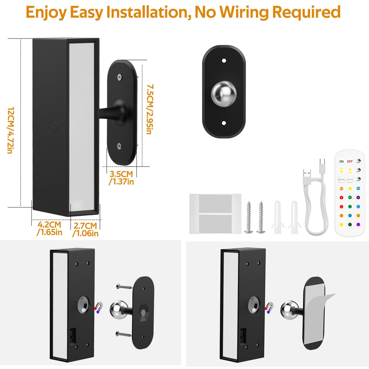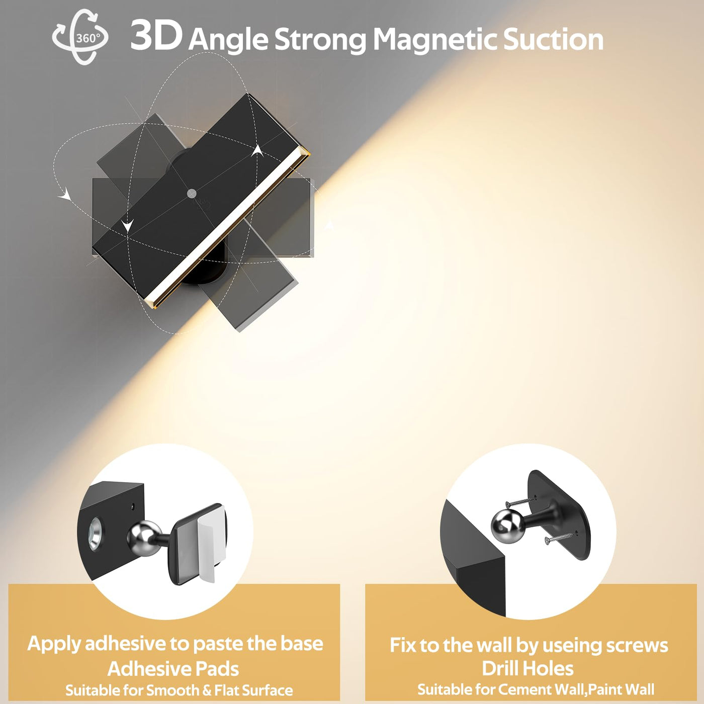 LED Wall Lights 2 Pack with Remote,Wall Sconces Lamp 3000mAh Rechargeable Battery Operated,3 Color Temperatures & 12 RGB Dimmable Magnetic 360° Rotation Cordless Light (Black)