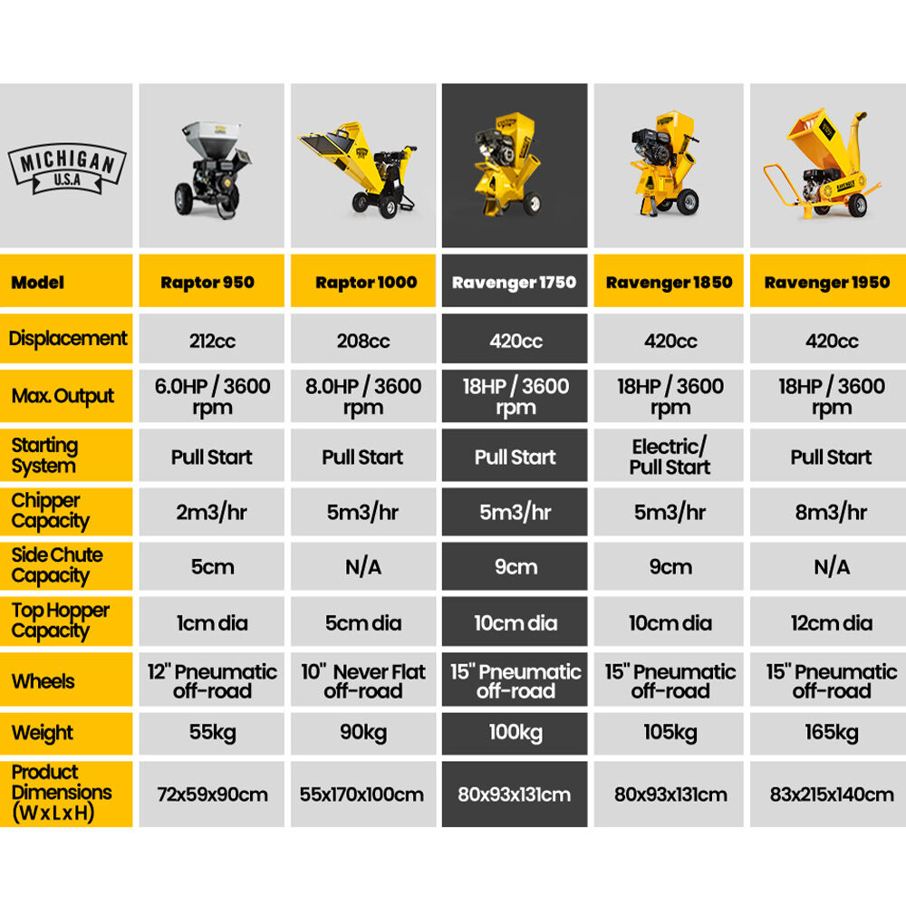 Packing the grunt of a legendary 420cc 18HP engine, the new Michigan RAVENGER 1750 is the ultimate commercial-grade chipping machine.