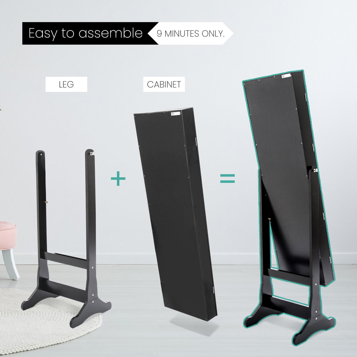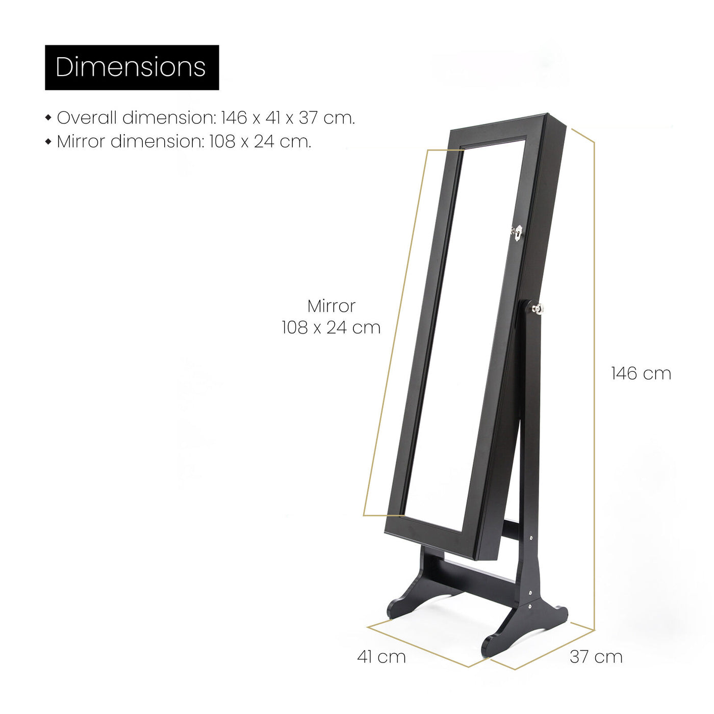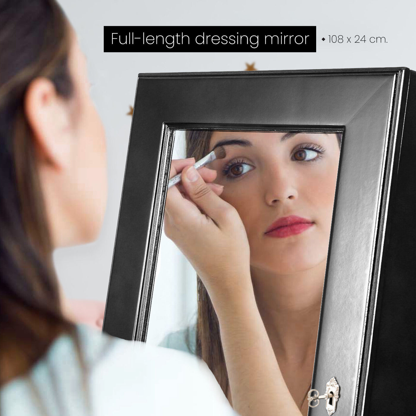 La Bella Mirror Jewellery Cabinet LOWE 146cm Organiser 2 Drawers - Black