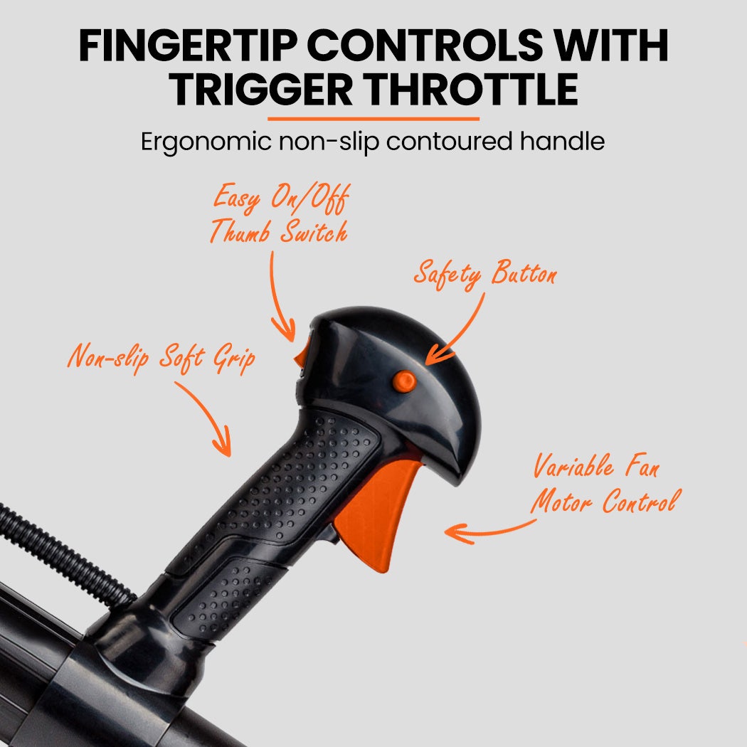 Thanks to the includedinterchangeable nozzles, you can easily clear out everywhere from driveways to garden beds, and tight crevasses. Asuper flexible air outletgives you optimal reach, and with a sensitive trigger, you can always apply just the right power to blow away even the biggest maintenance chores.