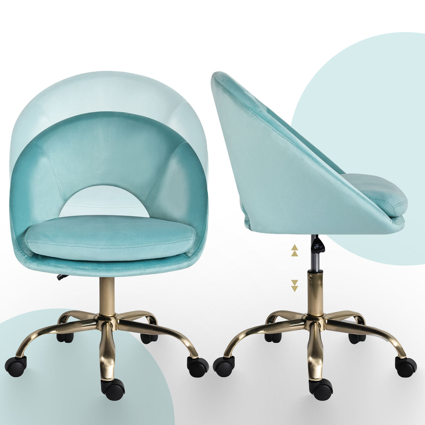La Bella Office Desk Chair - Velvet Home Office Swivel Computer Seat COVE - Blue